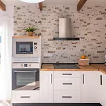 La cocina completa está equipada con un servicio de tetera/cafetera, así como nevera y también horno para cocinar.
